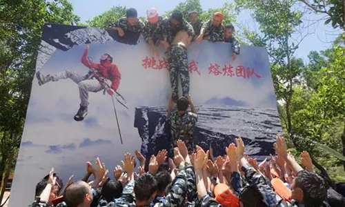 第二天8點整,美松同仁們來到"玫瑰海岸"開啟新一天的啟程,其中爬畢業(yè)墻項目深深的觸動著我們每個人內(nèi)心深處最柔軟的部位,留給我們每個人更多的是感動與感觸.規(guī)定時間60分鐘內(nèi)爬過高墻,不容許借助任何外力和工具,必須沿墻正面上去,每一個人踩在別人的肩膀上翻越一堵高墻,任風(fēng)吹雨打。能當(dāng)人梯的主動趴下為別人搭起人梯,整個攀爬過程任何人不能發(fā)出任何聲音,我們因為其中的一個人的吃力出聲而影響游戲規(guī)則,全體同仁受罰下來重新翻爬,每個人咬著牙,此時此刻不分男女,沒有埋怨,只有一個團隊。當(dāng)最后一個成員劉迪水雙手緊抓倒數(shù)第二個人黃尤兵的腳,借助個人手臂力量支撐到最后爬過畢業(yè)墻的時候,所有人都歡呼了,啊!我們成功了,同事們相互抱在了一起。。。。。。原本有私心的領(lǐng)隊自告奮勇的向教練舉手自薦當(dāng)總指揮的那一刻,她自私的以為當(dāng)了指揮官可以不用辛苦的翻越那座高達四五米高的畢業(yè)墻,此時此刻,更多的是羞愧。當(dāng)看到陳總從始至終當(dāng)主力人梯用肩膀扛上每個同仁時肩膀上留下的瘀青,周總監(jiān)從第一個爬上墻至拉起全體58位同仁時留在手臂上的劃痕,甘為人梯的黃經(jīng)理汗如雨下、當(dāng)繩子助力最后一位同仁的黃尤兵全身上下的帶著血跡的傷痕,還有很多沒有被點名的同仁咬著牙忍痛的堅持,女將廖路嬌默默的用單膝跪地當(dāng)副梯默默支撐最后一位隊員的奉獻精神時。小編作為領(lǐng)隊作為總指揮官坐在地上抱著雙臂哭了,任眼淚劃過臉龐。。。。。。更多的只是感動,這個團隊給予的力量,這個團隊的凝聚力?!胺角笊漠厴I(yè)墻”訓(xùn)練是對我們意志的考驗,4米高的筆直的石墻,沒有任何工具,大家齊心協(xié)力共同努力,征服"石墻",但是更讓我們無法忘懷的是作為人梯底座的隊員不知肩上,身上受了多少“踐踏”,更讓人敬佩的是為了幫助最后一名隊員順利攀上畢業(yè)墻,取得最終勝利的隊員,使同舟共濟的團隊精神得到了最好的升華。最后男女同事們分別圍成二個大圈,將總指揮官圈在最中間,發(fā)表最真誠的感恩肺腑之言,當(dāng)問及對美松的未來,對總經(jīng)理的決策,有沒有信心的時候,所有同仁激情四射異口同聲的回來:有!有!有!