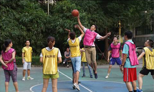 比賽開始前,江總熱情地為我們動員致詞,我們也以熱情點燃了整個籃球場,本著“安全、友誼第一,比賽第二”的原則,在球場上積極投入比賽。首先,進行第一場比賽的是2隊飛虎隊和6隊卓越隊,隨著音樂的響起,比賽正式開始。比賽過程中,隊員們熱情高漲,雙方隊員你爭我奪,引來不少園區(qū)人員駐足觀看,公司總經(jīng)理陳斌先生評價比賽比想象中要好得多。比賽進行一段時間后,天空開始下起了雨,但隊員們和拉拉隊們都沒有為此而暫停比賽,展現(xiàn)了美松科技良好的精神面貌。在下半場的比賽中,比賽規(guī)則的修改(女生進一球記為兩球)把比賽推向了高潮,場上歡呼聲、吶喊聲此起彼伏,隊員們矯健的身形,揮灑自如的動作成為了園區(qū)一道靚麗的風景線。經(jīng)過20分鐘的激烈爭奪,最終6隊贏得了第一場比賽。