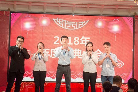 隨著陳董事長的開幕致詞,精彩的節(jié)目正式拉開帷幕!美松各部門都分別準備了精彩的節(jié)目,首先是研發(fā)部門帶來的勁爆舞蹈,在過去的一年中,研發(fā)部門發(fā)揮著企業(yè)發(fā)展創(chuàng)新的關(guān)鍵作用,在舞臺上同樣給大家?guī)矶恳恍碌母杏X。資材部門的《公司明天會更好》,他們用朗朗上口的三句半道出企業(yè)歷年來發(fā)展歷程以及公司未來發(fā)展的美好期盼。期間不乏一些平日里的隱藏高手,組裝部的《廣東愛情故事》《成都》,二曲唱完,余音繞梁,不愧為美松歌神。精彩輪番上演,掌聲根本停不下來! 內(nèi)容百花齊放,笑點不斷,掌聲四起,把年度盛典火熱的氣氛渲染的更加濃烈!