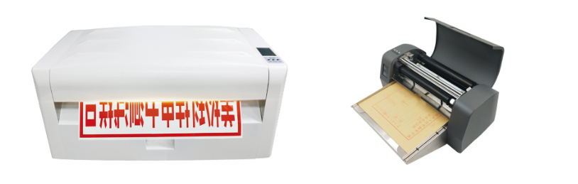 美松熱轉(zhuǎn)印打印機(jī)主要應(yīng)用于標(biāo)識(shí)打印機(jī)(下圖左)和卷宗卷皮、檔案袋、檔案盒封面打印機(jī)(下圖右)兩大類,