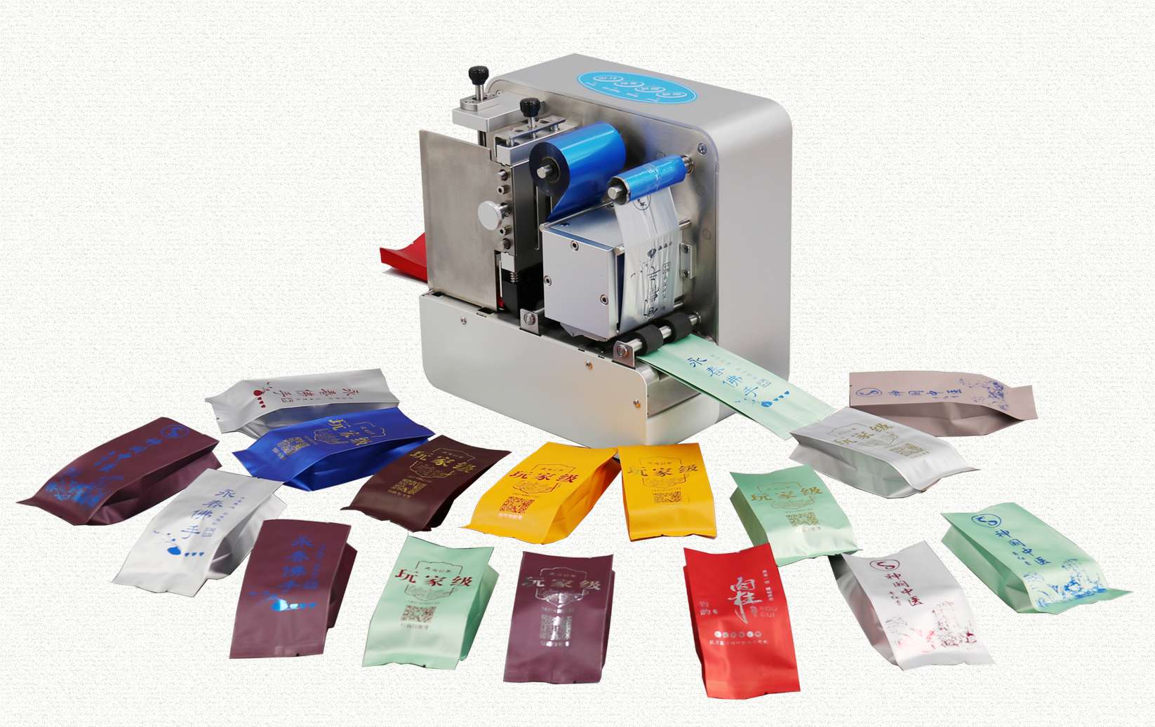 2. 燙金顏色多選,彩色印制包裝袋;燙金機(jī)不僅可以燙金和燙銀,還可以燙印多種彩色,滿足不同包裝袋配色需求,提高檔次。