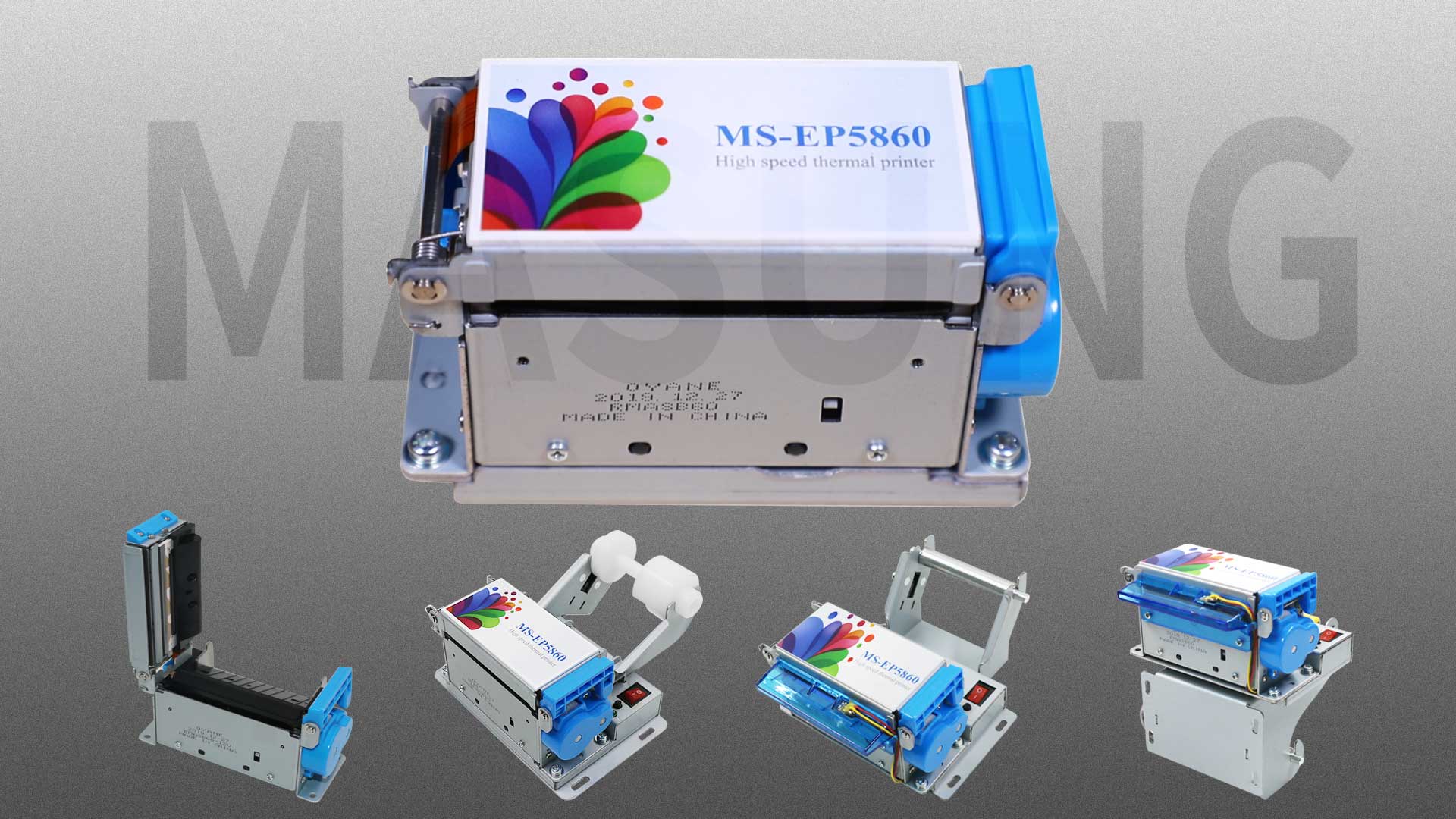 美松打印機MS-EP5860系列打印頭“翻蓋式”設(shè)計和多種裝紙結(jié)構(gòu)為自助式設(shè)備建造者提供更簡單的安裝操作方法。外形小巧,重量超輕,具有靈活的安裝選項,不僅如此,再打印方面配置了不干膠標(biāo)簽紙打印和普通熱敏紙打印的選項,打印速度高達(dá)250毫米/秒。