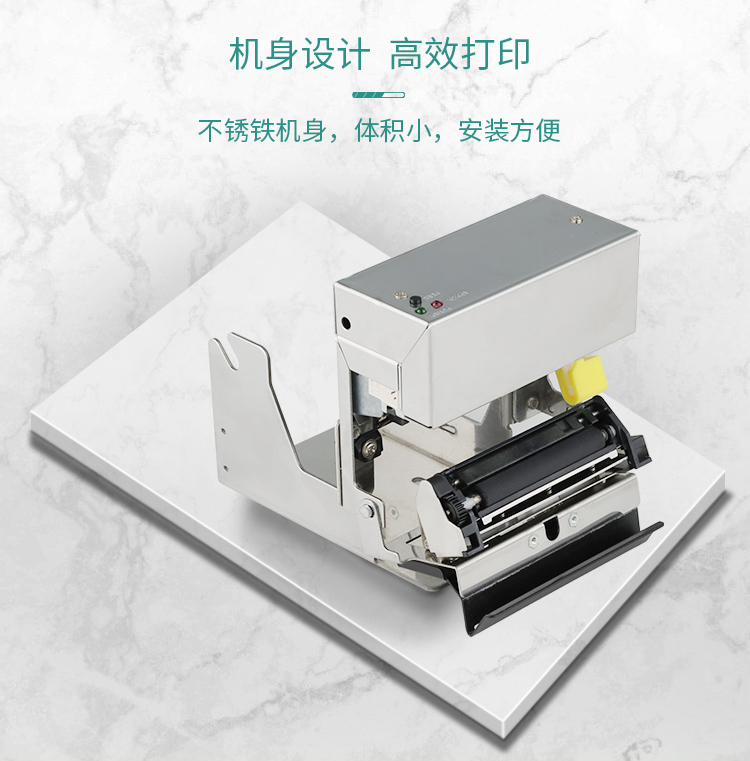 嵌入式 熱敏打印機(jī)介紹:這款嵌入式打印機(jī)是58mm熱敏打印機(jī),采用不銹鐵金屬外殼,耐腐蝕不易生銹,機(jī)身小,嵌入安裝簡單易維護(hù),打印紙熱敏紙耗材成本低,嵌入式熱敏打印機(jī)是存包柜排隊(duì)機(jī)等設(shè)備的打印模塊。