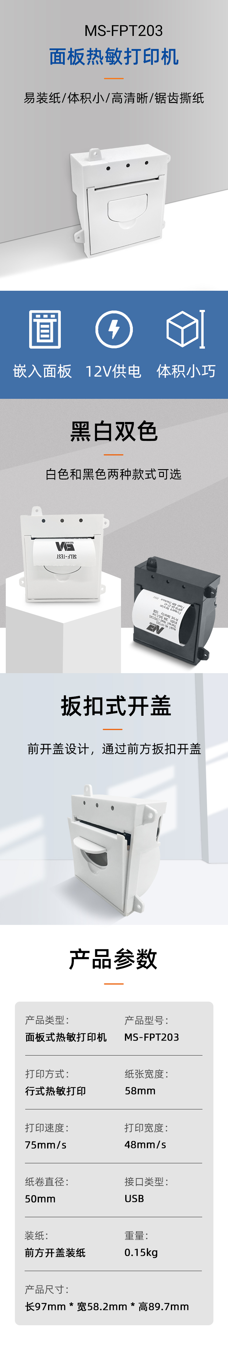 微型打印機(jī)型號:MS-FPT203