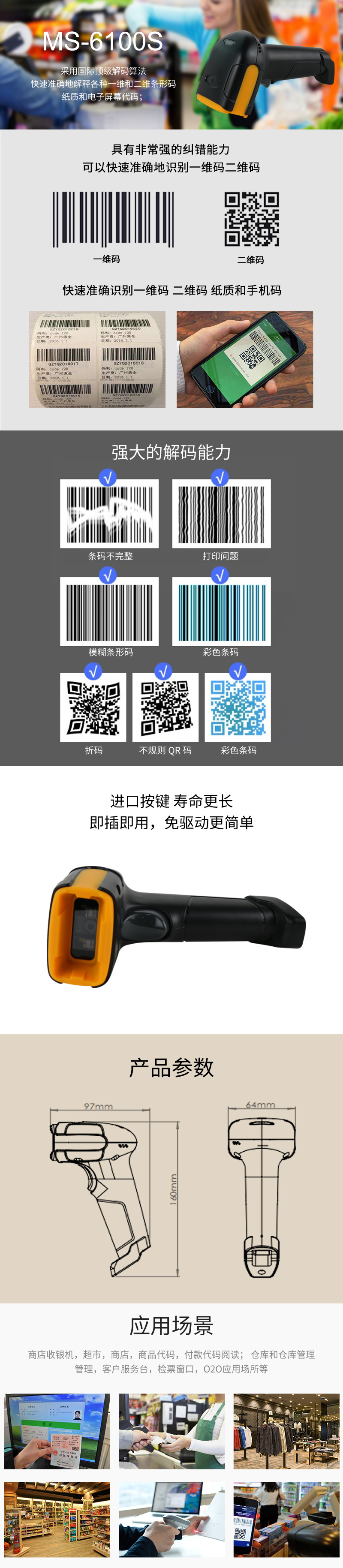 30萬(wàn)像素二維有線掃描槍MS-6100S