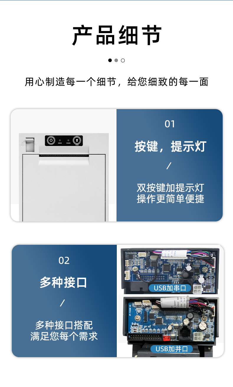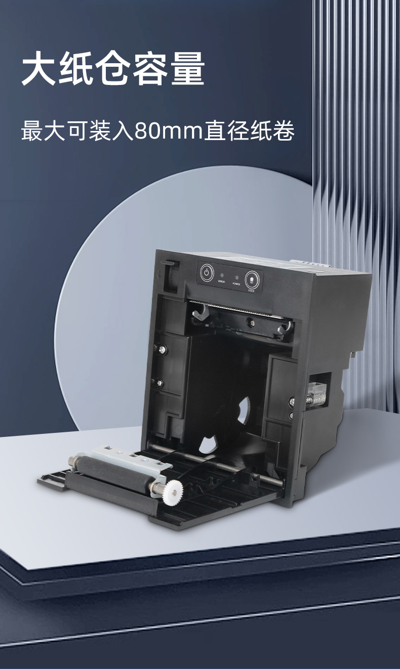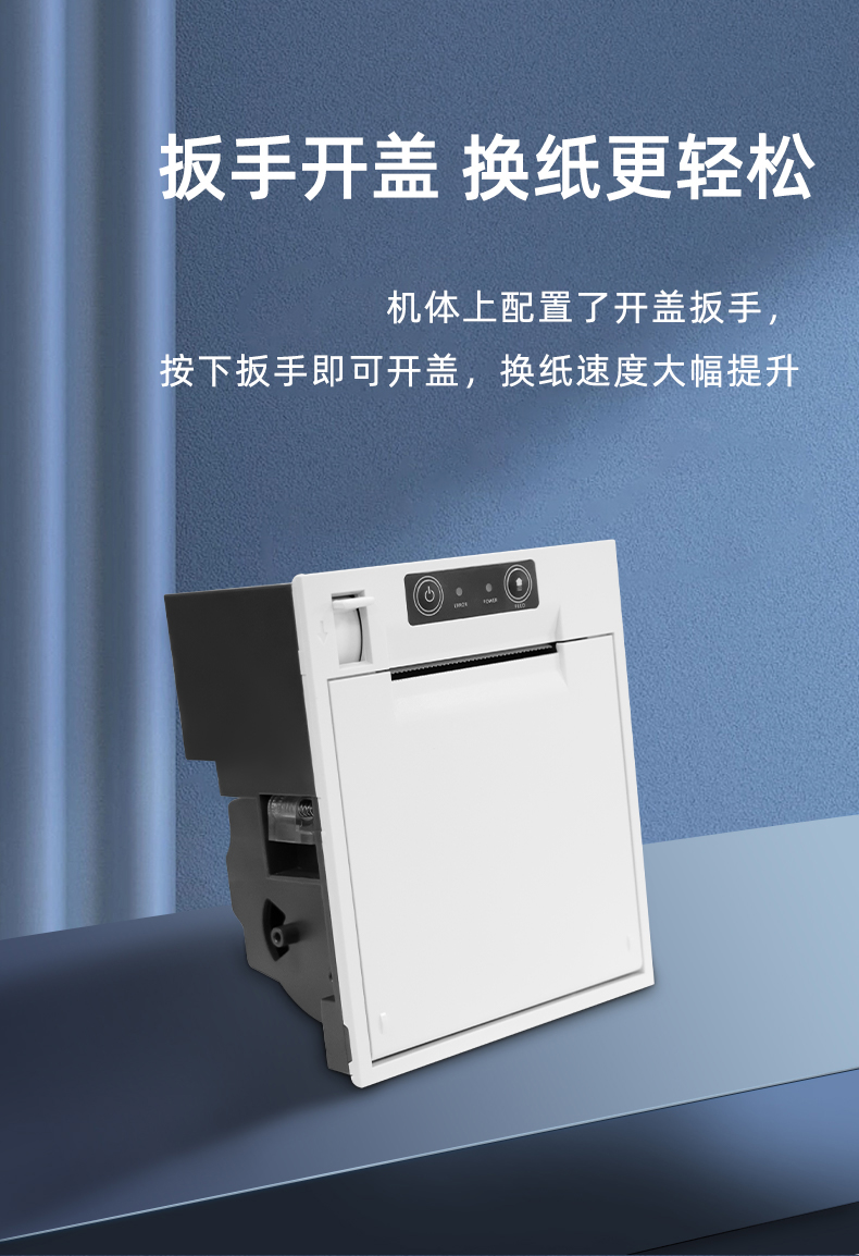 微型打印機特點:前開蓋維護,無需拆開終端設備就可實現換紙和維護