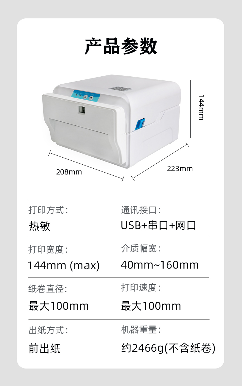 1.一款6寸熱敏條碼打印機(jī),可容納最大160mm寬的紙卷