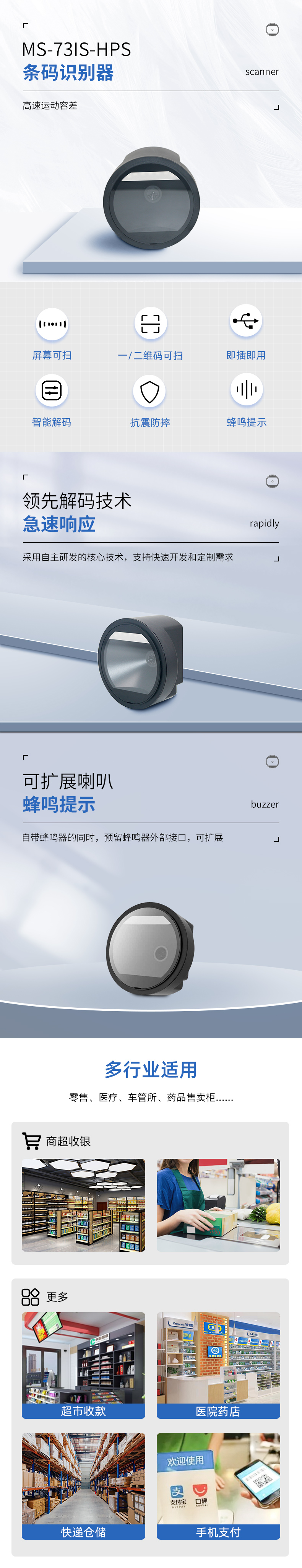 1.針對零售碼特殊優(yōu)化 2.褶皺殘缺電子秤條碼算法補償 3.百萬像素 4.可擴(kuò)展喇叭 5.USB和RS232串口支持 6.廣角 7.高運動容差