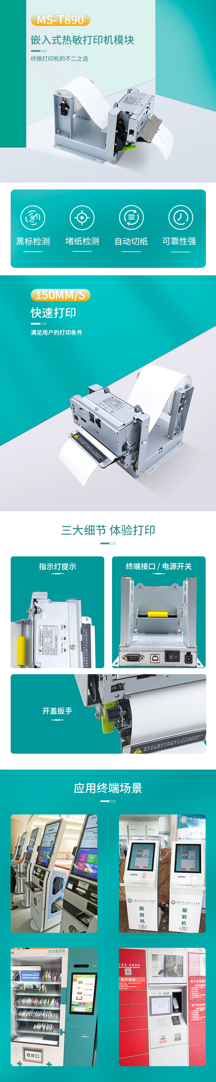 美松(MASUNG)80mm嵌入式熱敏打印機MS-T890打印機是一種新型行式熱敏打印機,擁有自動進(jìn)紙、自動切紙、黑 標(biāo)檢測等功能,另可增加防堵紙、紙將盡等功能。適用于KIOSK、自助查詢終端、排隊機、ATM、停車場憑 條打印、彩票打印、日志打印、自助話費清單打印機、自助發(fā)票打印、自助繳費 機等領(lǐng)域的使用。
