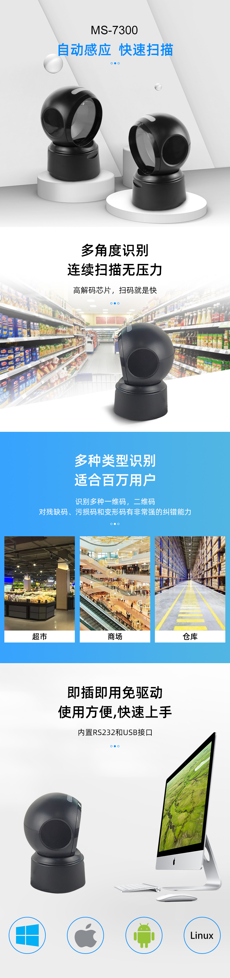 4、支持紙質(zhì),薄膜類(lèi),商品碼,付款碼讀取