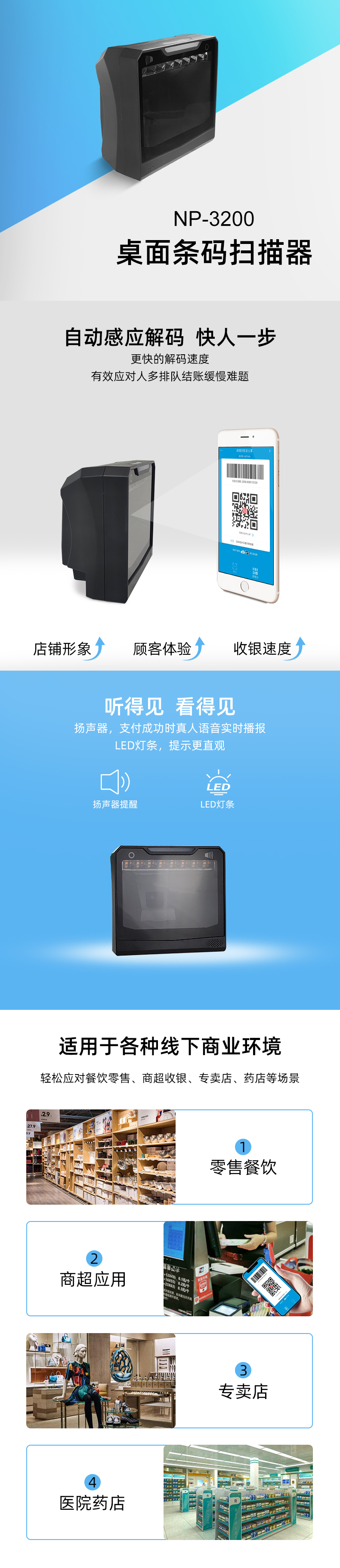 適用于各種新零售行業(yè),紙質(zhì)條碼與手機條碼間流暢切換