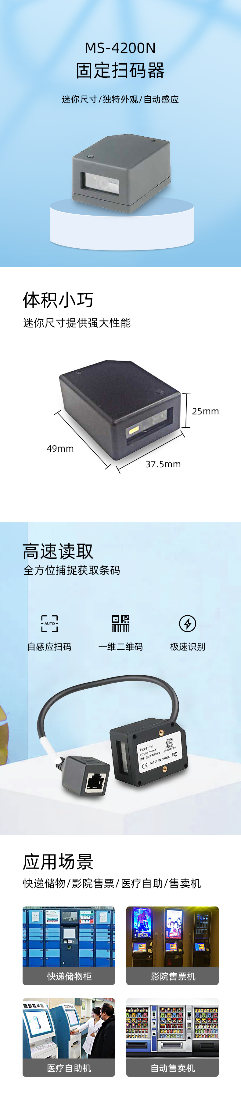 1.兼容紙質(zhì)和電子屏,一維和二維條碼均可識(shí)讀