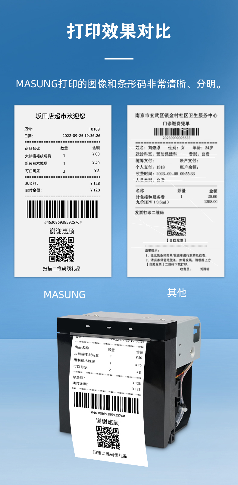 MS-FPT302是一款面板嵌入式自助打印機(jī),專業(yè)的熱敏票據(jù)打印機(jī),用于醫(yī)療、零售、政務(wù)等行業(yè)的自助終端設(shè)備。水平面蓋嵌入,高端大氣,無人值守打印機(jī)適配無人無接觸式服務(wù)設(shè)備。