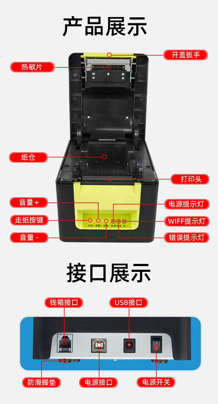 采用插墻式12V電源適配器,方便簡單又安全,絕對是您餐飲、商超、彩票、影院的專用打印機首選