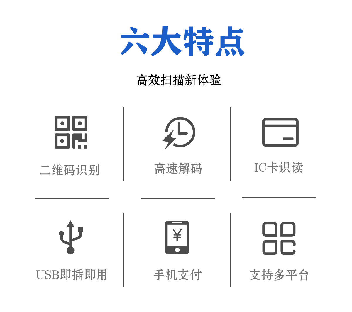 融合接觸式IC卡、非接觸IC卡、身份證、一維&二維條碼等