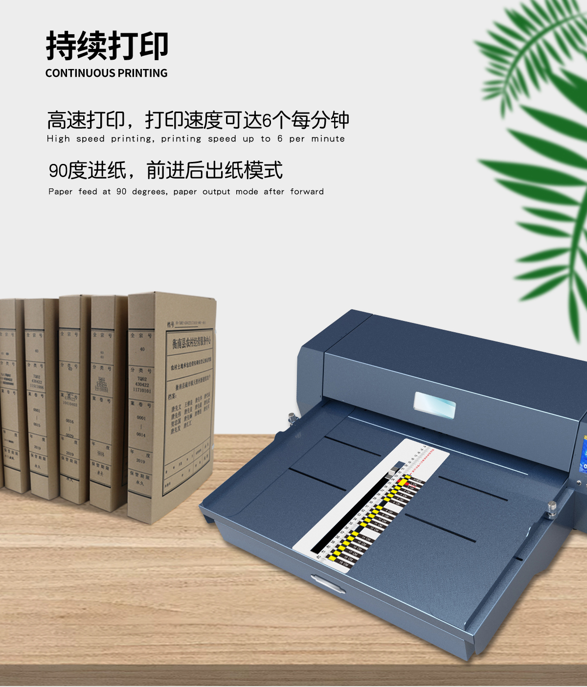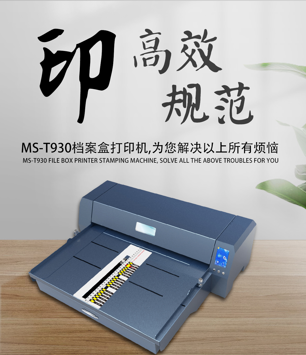 美松MS-T930檔案盒熱轉(zhuǎn)印打印機,熱轉(zhuǎn)印設(shè)備,熱轉(zhuǎn)印機器針對已印刷的檔案盒封面進行二次加印,或單張空白版面牛皮紙,無酸紙,證件內(nèi)頁進行打印的設(shè)備.采用碳帶熱轉(zhuǎn)印方式打印,文字清晰耐刮永不褪色.電腦排版完即可通過USB打印無需制版,A3+標(biāo)準(zhǔn)檔案盒幅面,方便快捷成本低廉,機構(gòu)可靠性高,操作,維護簡單.適用于公檢法,檔案局,審批局,醫(yī)療診所,教育機構(gòu),煙草,房產(chǎn)管理,電力,鐵路等行業(yè)。