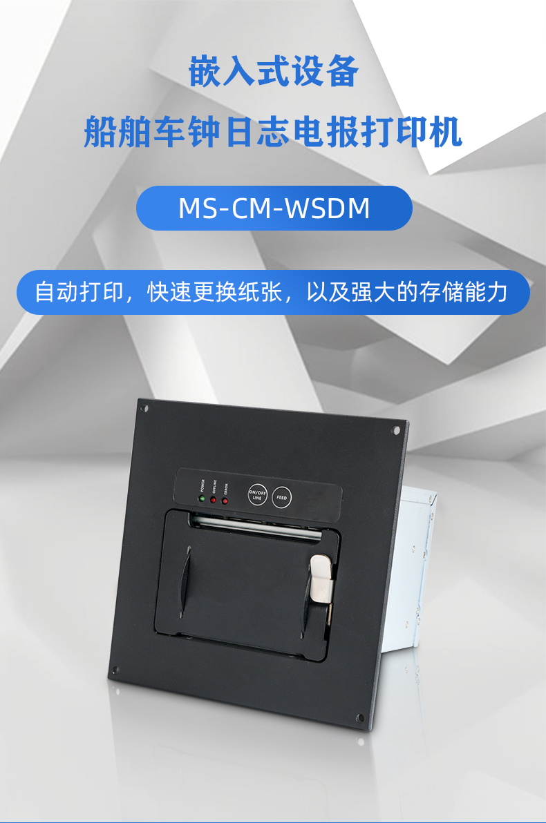 MS-CM-WSDM是由美松自主研發(fā)生產(chǎn)的一款船舶車鐘發(fā)動(dòng)機(jī)電報(bào)紀(jì)錄打印機(jī)。在進(jìn)行打印的同時(shí)能自動(dòng)回收保存打印好的記錄,可長(zhǎng)時(shí)間的運(yùn)行,具有特殊的工藝能在船舶水汽較重,潮濕的環(huán)境中完成打印,船舶的搖晃也不影響打印的平穩(wěn)運(yùn)行,同時(shí)具有串口和RS232接口可使用,