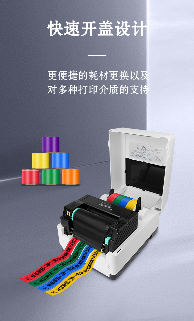 熱轉印模式打印的效果更好,可打印多種不同的介質類型,打印的適用范圍大幅提升,通過更換打印介質實現(xiàn)多種打印效果,更換碳帶可以打印多種顏色