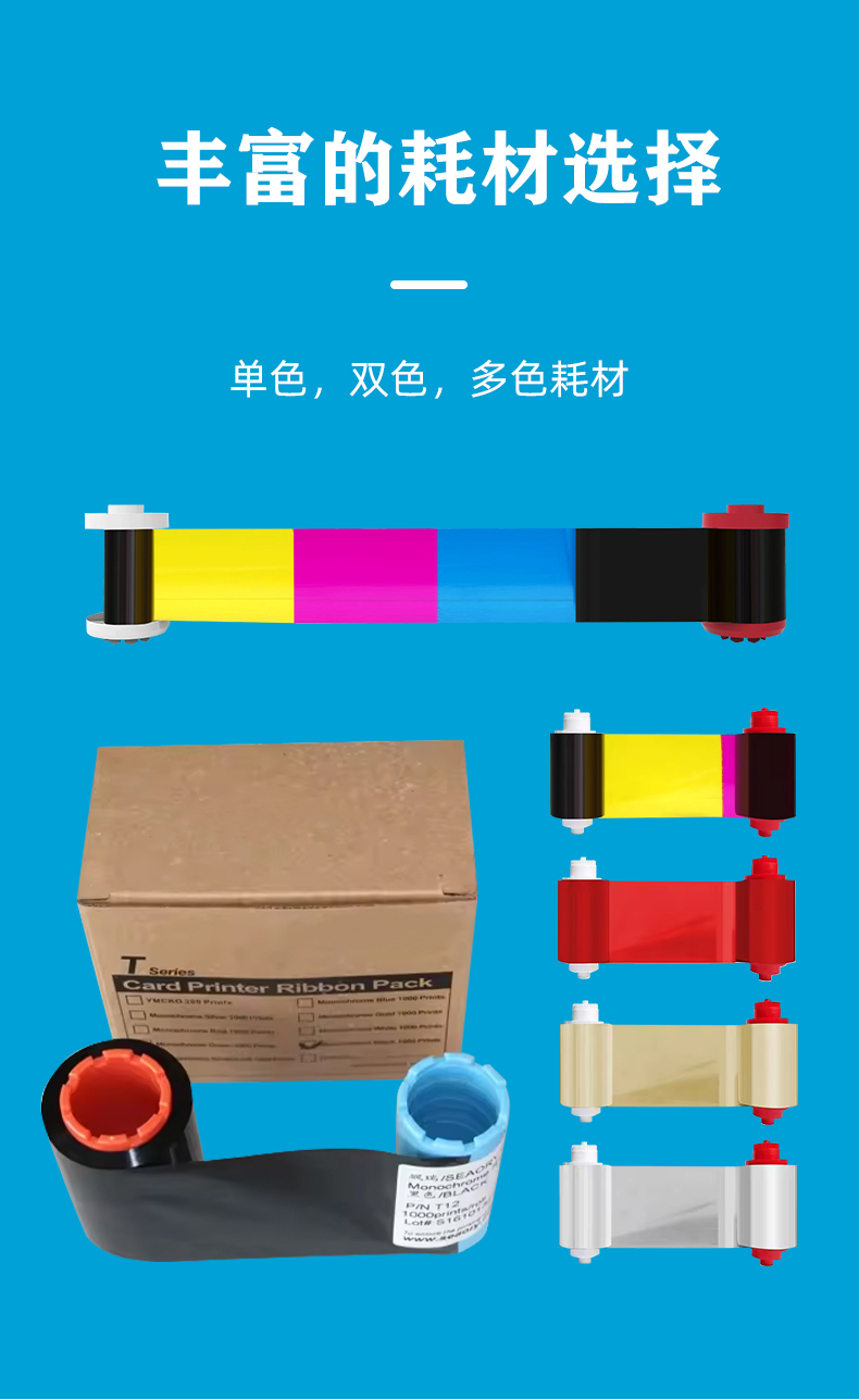 全格彩色帶:YMCKO,100面/卷;YMCKO,300面/卷;YMCKOK,240面/卷