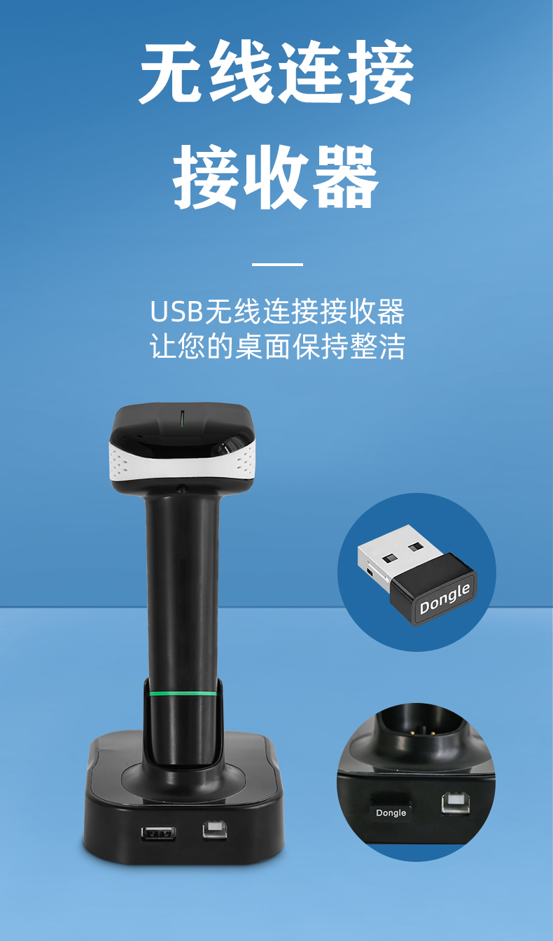 MS-6650Z是一款手持式的無線帶平臺掃碼槍,外觀特性在于,不需要使用連接線,無線USB接收器連接,配備桌面平臺用于收納擺放和充電;產(chǎn)品特點在于: