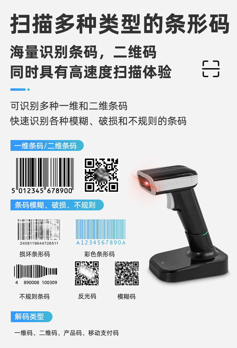 采用高速曝光算法,兼容手機碼和紙質碼的