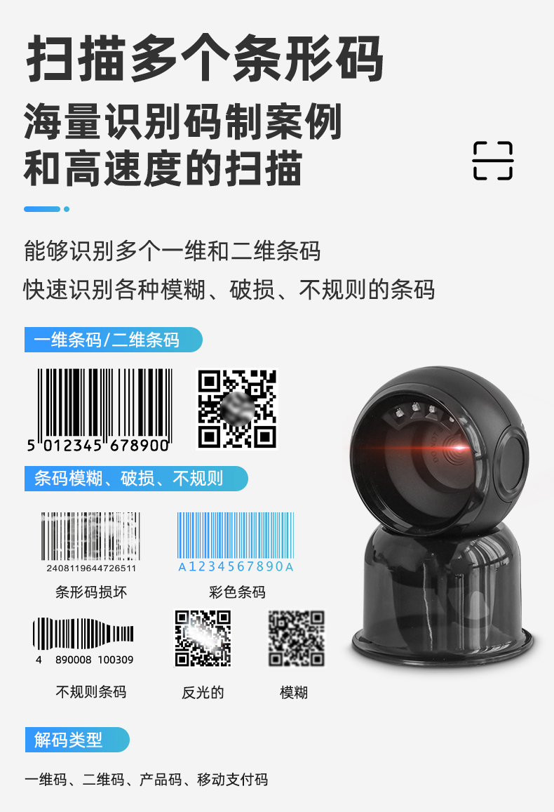 新零售、檢票、醫(yī)療等桌面設(shè)備。尤其適合零售商品碼和其他高密、反光、殘缺、褶皺條碼的運動中讀取。