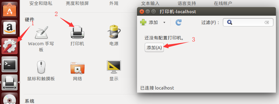 1打開系統(tǒng)設(shè)置,2點(diǎn)擊打印機(jī),3點(diǎn)擊添加。