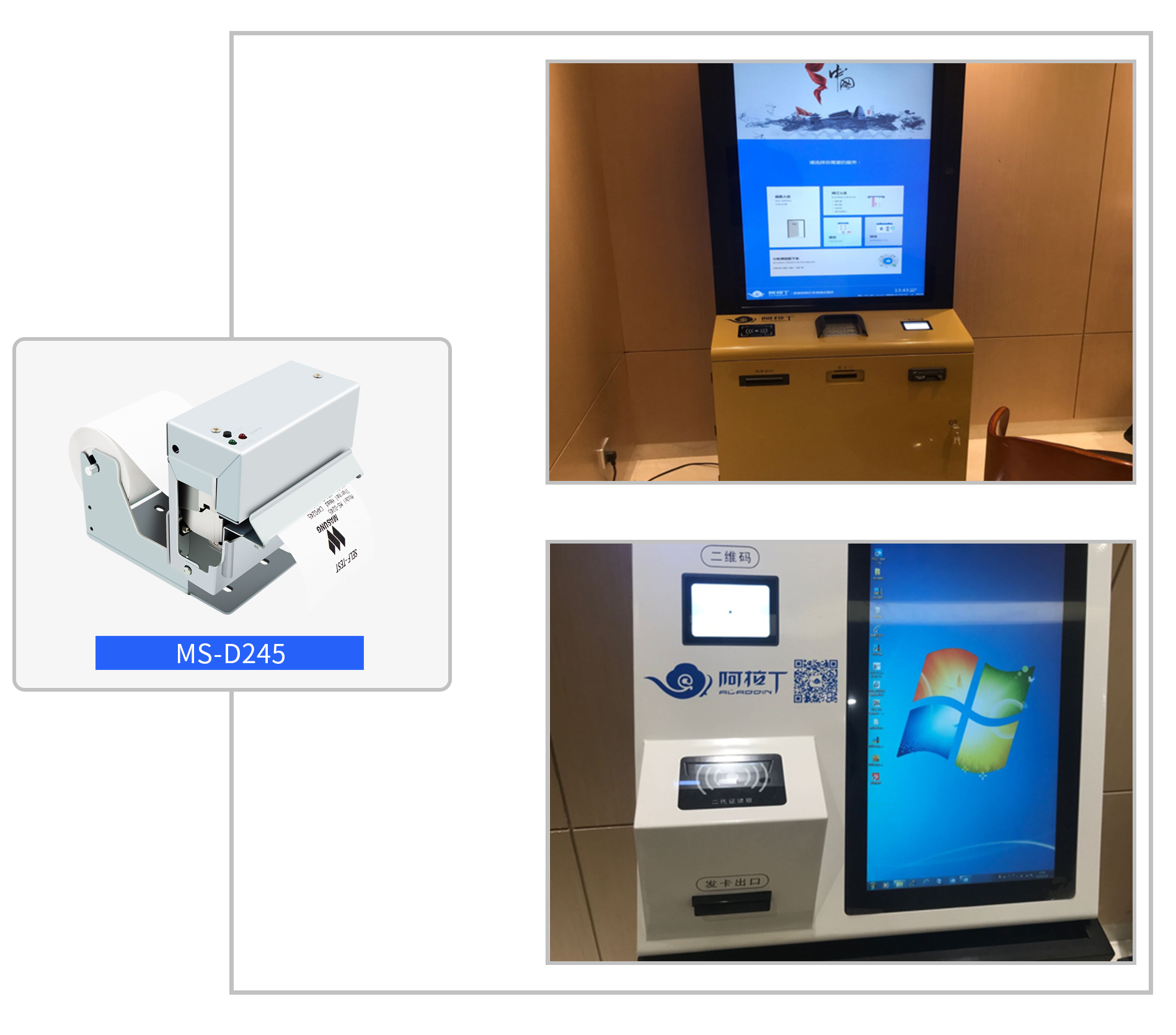 面對(duì)各類新型酒店服務(wù)的不斷發(fā)展,越來越多新型設(shè)備被應(yīng)用在行業(yè)之中。美松公司通過展會(huì)接觸山東網(wǎng)絡(luò)技術(shù)有限公司,了解到目前酒店業(yè)的主要使用場(chǎng)景及應(yīng)用要求,成功將 MS-D245 嵌入并批量應(yīng)用。MS-D245 是由美松公司研發(fā)設(shè)計(jì)的第一代58mm嵌入式打印機(jī),具有高速出票的打印速度,小巧靈活的外觀廣受好評(píng)。應(yīng)用于合作智慧酒店大堂設(shè)備中,利用智慧酒店自助服務(wù)一條龍:預(yù)定,入住,續(xù)住,退房均可自助操作。針對(duì)各類型的智慧應(yīng)用設(shè)備,美松公司具有豐富的案例經(jīng)驗(yàn),為不同類型的智慧機(jī)器提供打印及掃描解決方案,滿足廣大智慧應(yīng)用市場(chǎng)的發(fā)展需求。