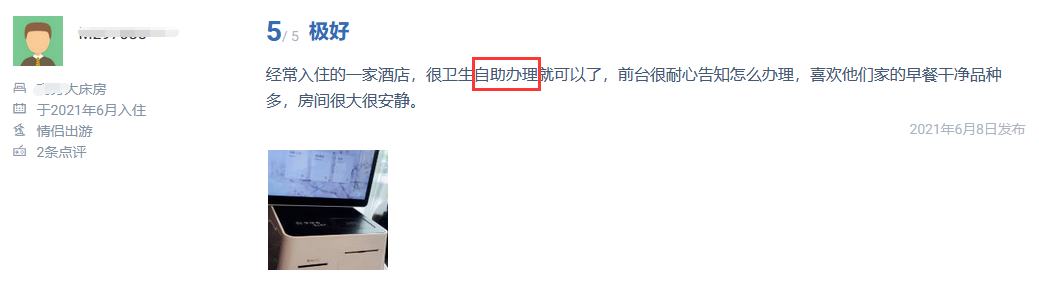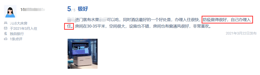 下面是體驗了自助辦理入住酒店的用戶評價,不管是和朋友入住、和情侶入住,還是獨自入住、商務入住等,都表示自助辦理入住服務表示滿意,數(shù)字酒店在一手防控疫情一手提高用戶體驗感開創(chuàng)新模式。