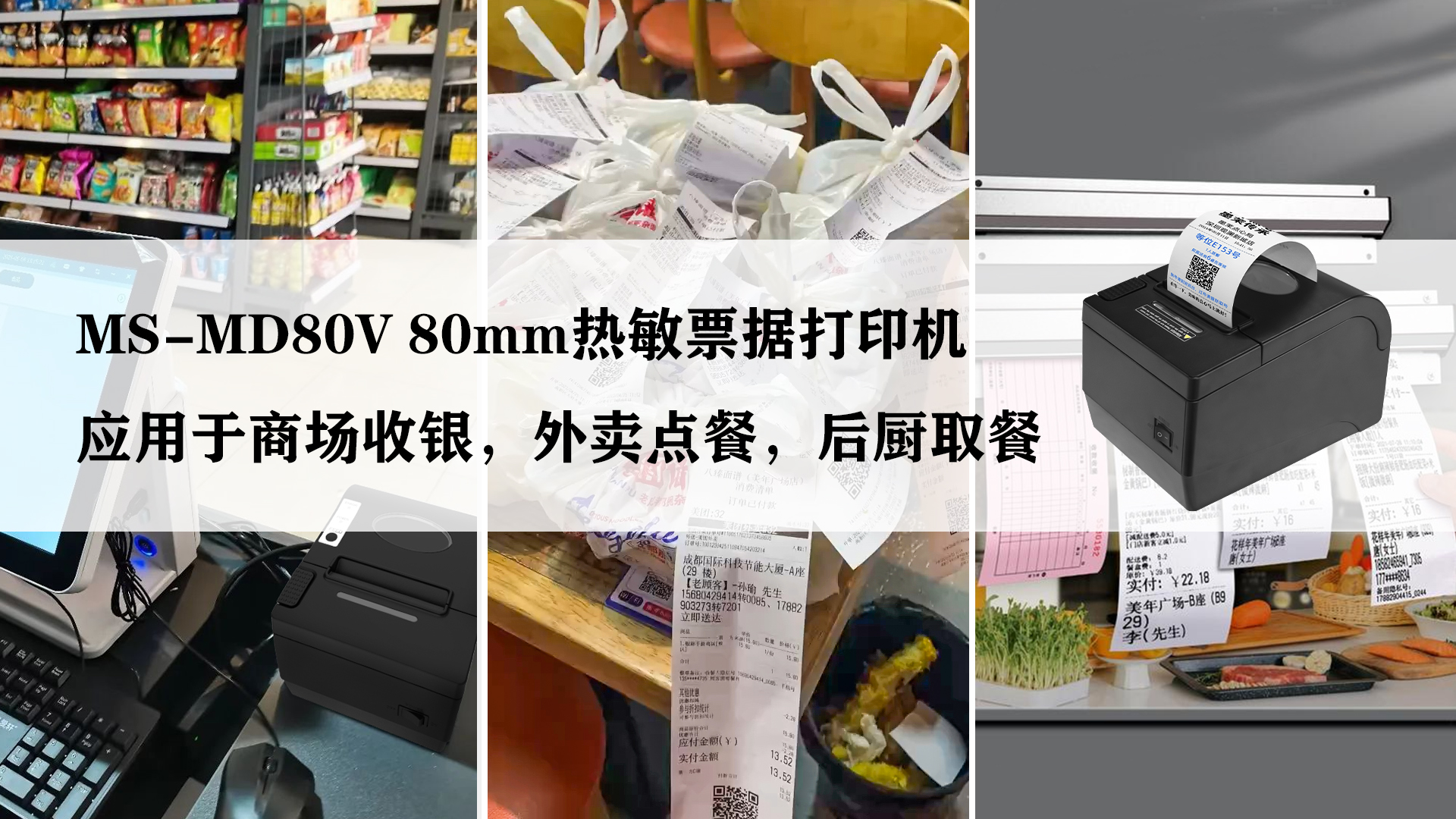 2.餐飲外賣票據(jù)的打印,餐飲外賣行業(yè)普遍存在高峰期連續(xù)點(diǎn)餐打印票據(jù)的情況,比如午飯時間和晚餐時間,因?yàn)槿巳捍罅康狞c(diǎn)餐,所以對打印機(jī)的打印速度和打印機(jī)連續(xù)打印的穩(wěn)定性有一定的考驗(yàn),而MS-MD80V同時具有打印速度和穩(wěn)定性兩張?zhí)攸c(diǎn)能更輕松的完成打印任務(wù)。